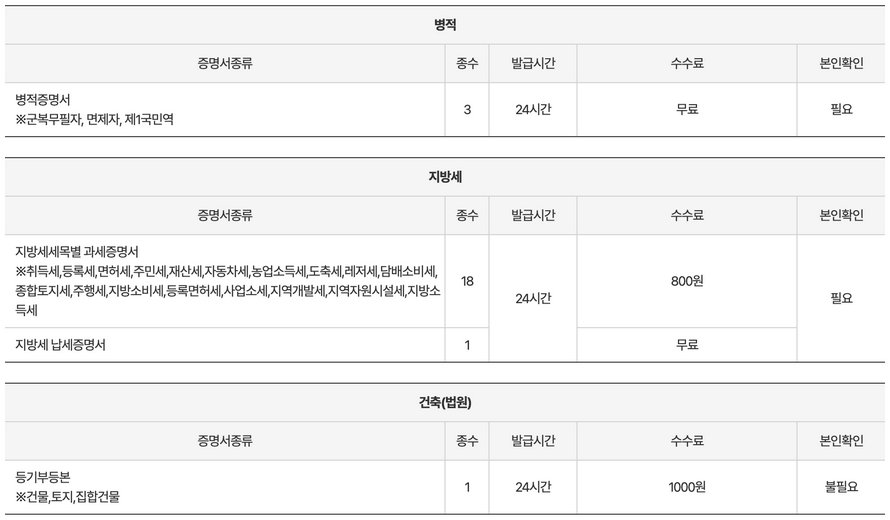 무인민원발급기 가능한증명서